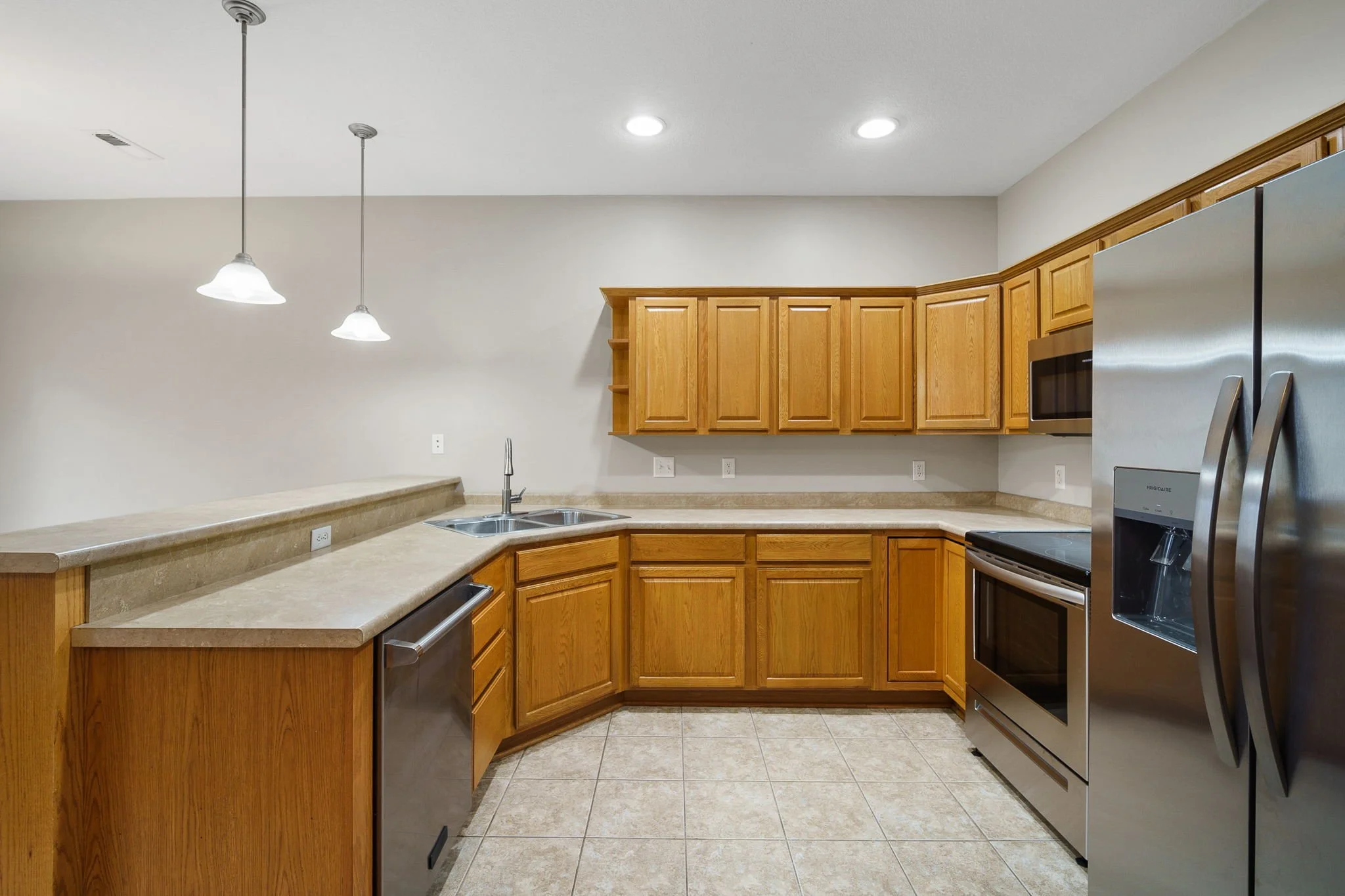 Brand new LVT flooring in family room. Gas fireplace Brand new stainless steel fridge, range and microwave. High end Viking dishwasher. Private patio through sliding doors off kitchen. Stacked washer and dryer. Double car garage and private driveway. Snow removal and lawn care services provided by association. Property is listed for $197,500. HOA dues $160/month.